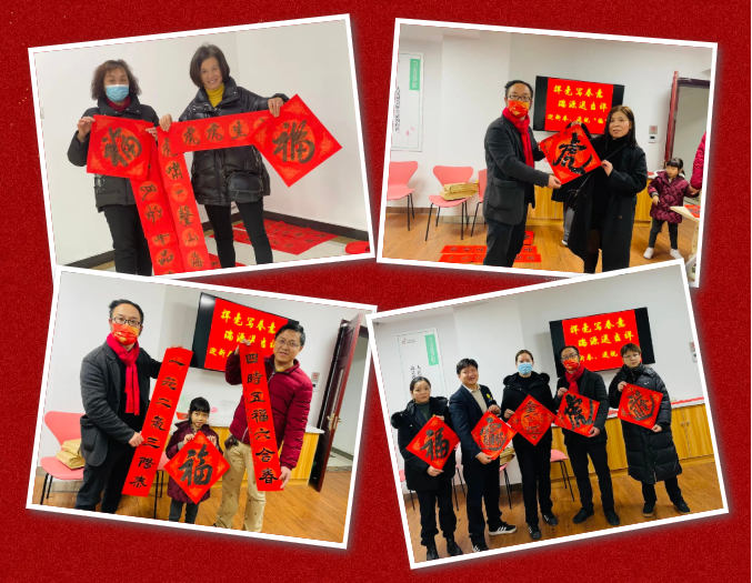 業(yè)主們手捧一副副吉祥如意的春聯(lián)、一個個福氣滿滿的“福”字,欣喜之情溢于言表,現(xiàn)場氛圍其樂融融。